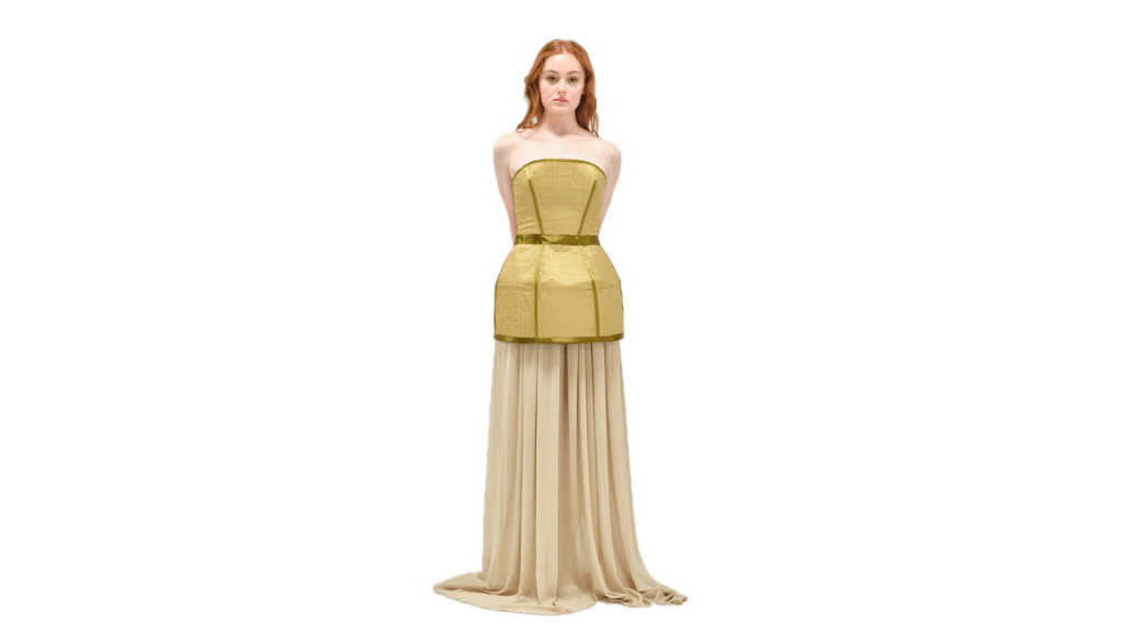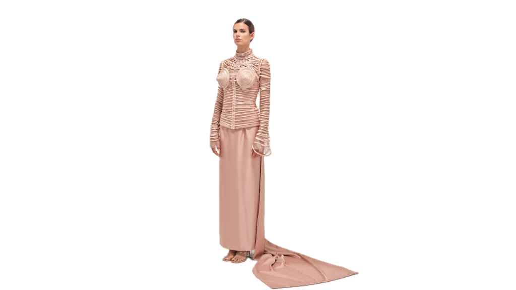 This collection is inspired by the adoration and adornment of women. Paying homage to the rings wrapped around the body of giraffe women and the corsetry of the Victorian era, highlighting the sculpted culture around the female silhouette. Inspired to create a fusion of ornate detailing and body sculpting techniques that evoke an era of luxury and sophistication, reimagined with a modern twist.